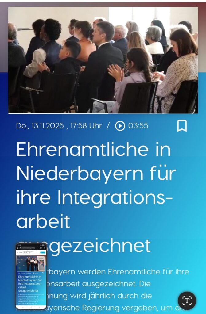 WIR WURDEN AUSGEZEICHNET MIT DEM Integrationspreis der Regierung von Niederbayern 2025
